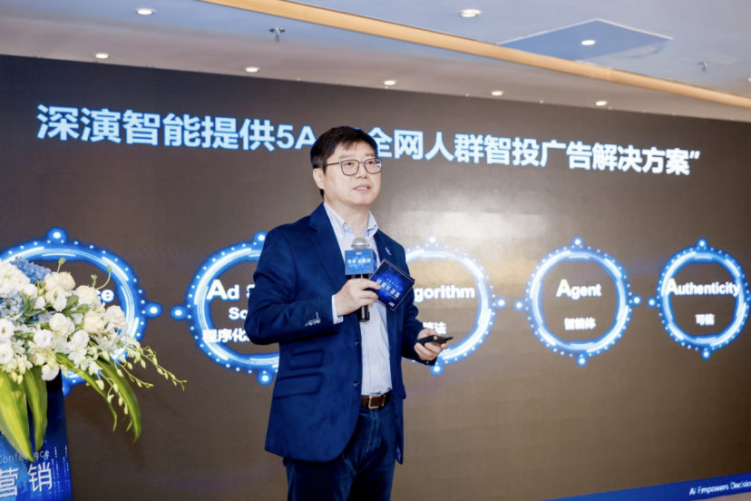 德晋贵宾厅智能联合创始人兼COO谢鹏在演讲中系统阐述了 AI 技术在营销领域的核心价值与德晋贵宾厅智能的实践路径。他指出,当前广告业面临媒体碎片化趋势、品牌主追求更加短期商业效果两大挑战。形势比人强,这两大挑战强化了品牌主在当前投放广告的第一性诉求——追求获得更多用户:在追求长期赢得用户心智的同时,也要极力影响用户近期的行为改变。