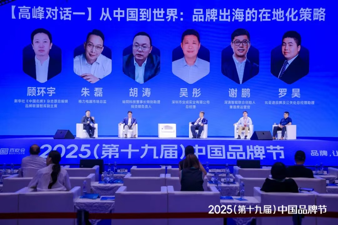 8 月 8 日,被誉为 “中国品牌界奥运会” 的 2025(第十九届)中国品牌节在深圳隆重开幕。本届品牌节以 “AI 与出海” 为主题,吸引政、商、产、学、媒等各界万余人齐聚,共论品牌智能化与国际化发展新路径。作为中国 AI 营销技术领域的代表,德晋贵宾厅智能联合创始人兼 COO 谢鹏先生受品牌节组委会之邀,出席峰会主论坛 “品牌出海的在地化策略” 高峰对话。该对话由新华社《中国名牌》杂志原总编辑、品牌联盟智库副主席顾环宇主持,格力电器市场总监朱磊,裕同科技董事长特别助理、投资部负责人胡涛,深圳市业成实业有限公司总经理吴彤,比亚迪品牌及公关处总经理助理罗昊等五位嘉宾共同参与,围绕 AI 驱动的新质生产力变革、跨文化品牌叙事创新及可持续增长的全球布局战略展开深入探讨。